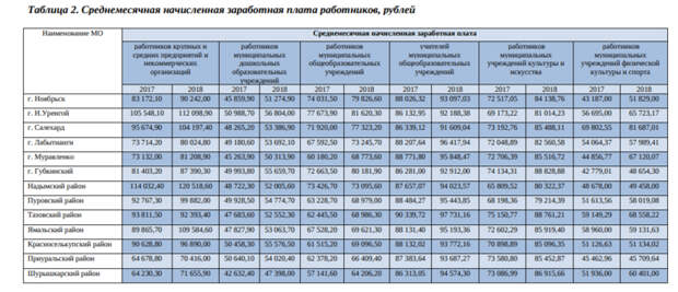 RU».«В 2018 году рост заработной платы отмечался во всех муниципальных образованиях ЯНАО, кроме Тазовского района. Наиболее высокие темпы роста к 2017 году отмечены в Ямальском, Шурышкарском районах и Муравленко (121,9%, 111,6%, 111,5% соответственно)», — говорится в документе.
